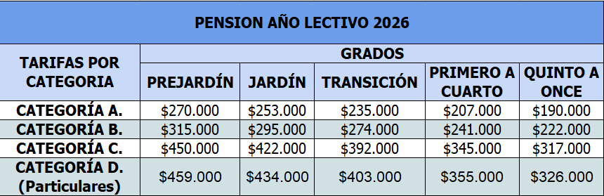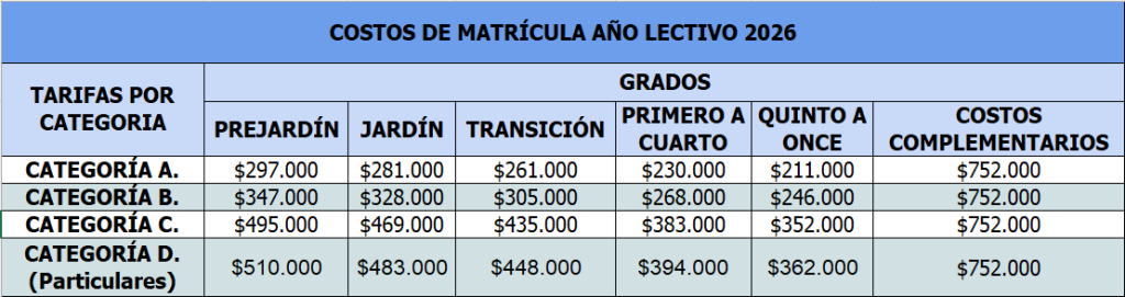 - Ambos padres de familia deberán diligenciar y firmar en el colegio el contrato de prestación de servicios educativos y el pagaré. En caso excepcional de padres o madres cabeza de hogar, este trámite será realizado únicamente por el padre o la madre responsable económicamente (afiliado de la Caja de Compensación Familiar)